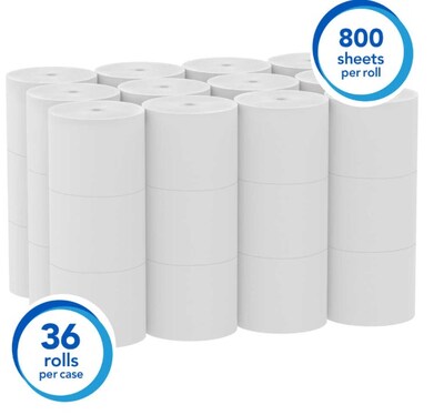 Scott standard roll toilet paper has 1000 sheets per roll providing fewer roll changes.